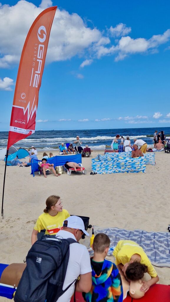 Projekt prowadzimy na świnoujskiej plaży od 15 lat przy stałym wsparciu GAZ-SYSTEM S.A. Jego celem jest realne podniesienie bezpieczeństwa nad wodą poprzez krótkie, praktyczne szkolenia dostępne dla każdego – mieszkańców i turystów.